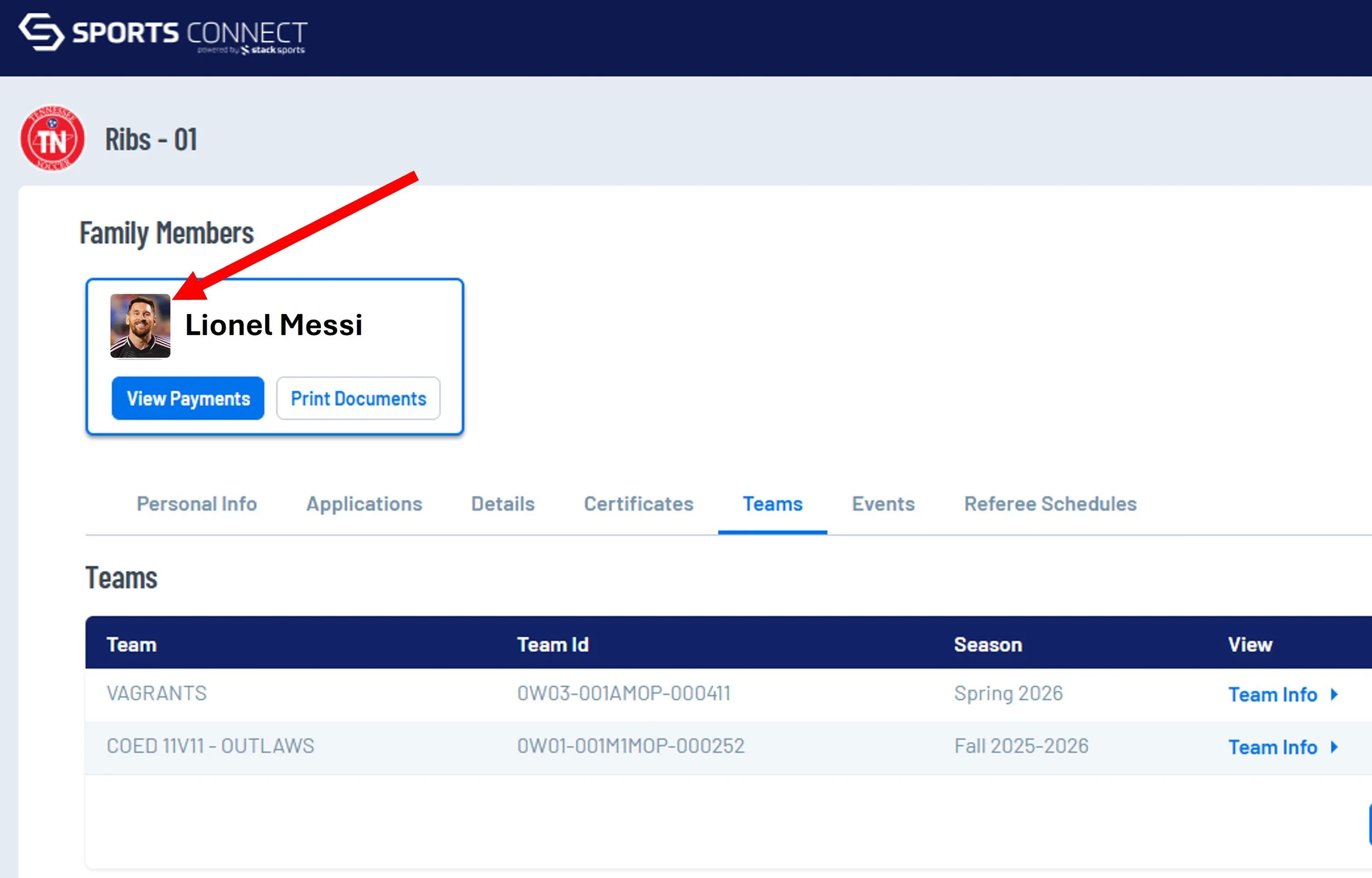 Log in on the RIBS League registration site